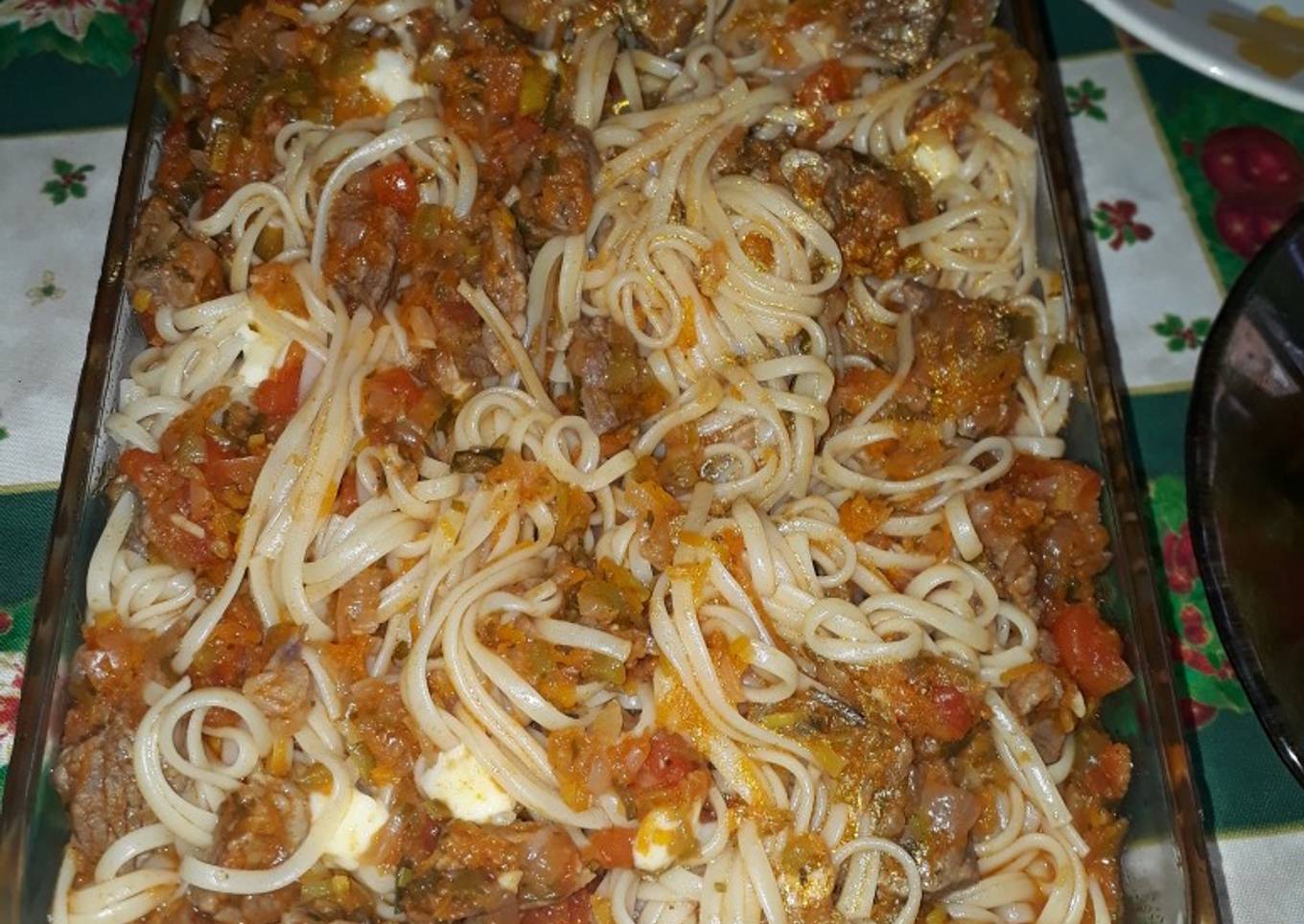 - Para finalizar estos deliciosos fideos, ponemos en una fuente un poco de salsa, los fideos y el resto de la salsa. Muy pero muy ricos. Me encanta. 😋😋😋