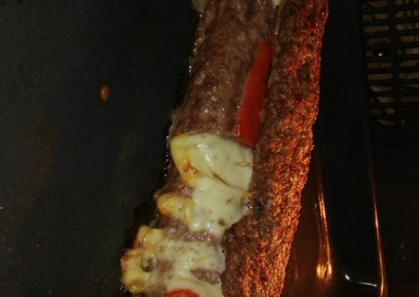 - Lo primero es pochar el pimiento rojo a tiras gordas a fuego lento hasta que esté echo en la sartén. Ponemos la carne en un bol echamos la cucharada de comino, la sal después añadimos el huevo y recientemente las 4 cucharadas de pan rallado y lo removemos todo, en la misma bandeja de el horno ponemos papel film y extendemos l carne hasta ocupar toda la bandeja