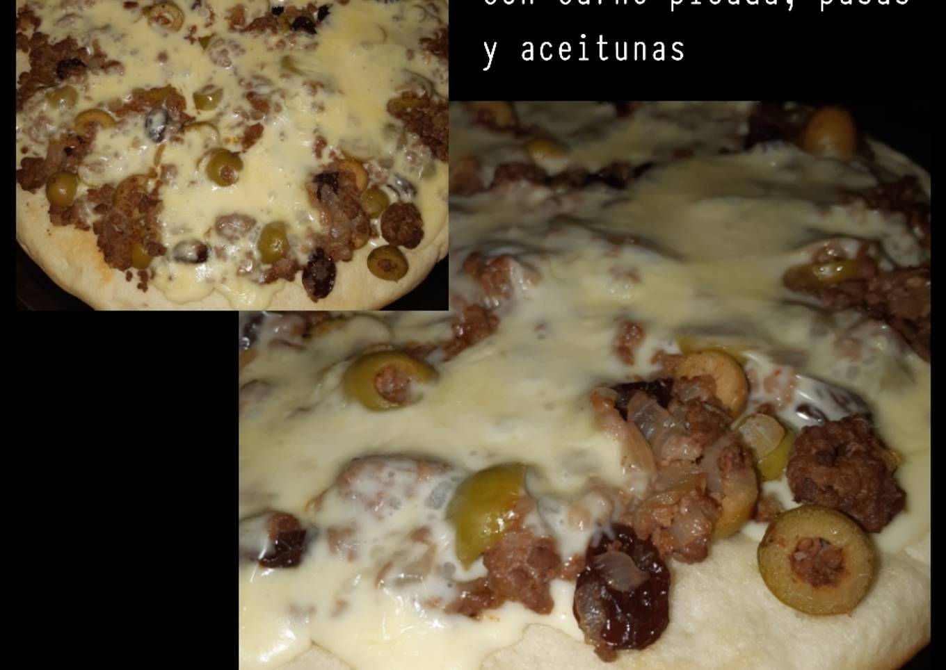 Súper Pizza casera c/carne picada, pasas y aceitunas