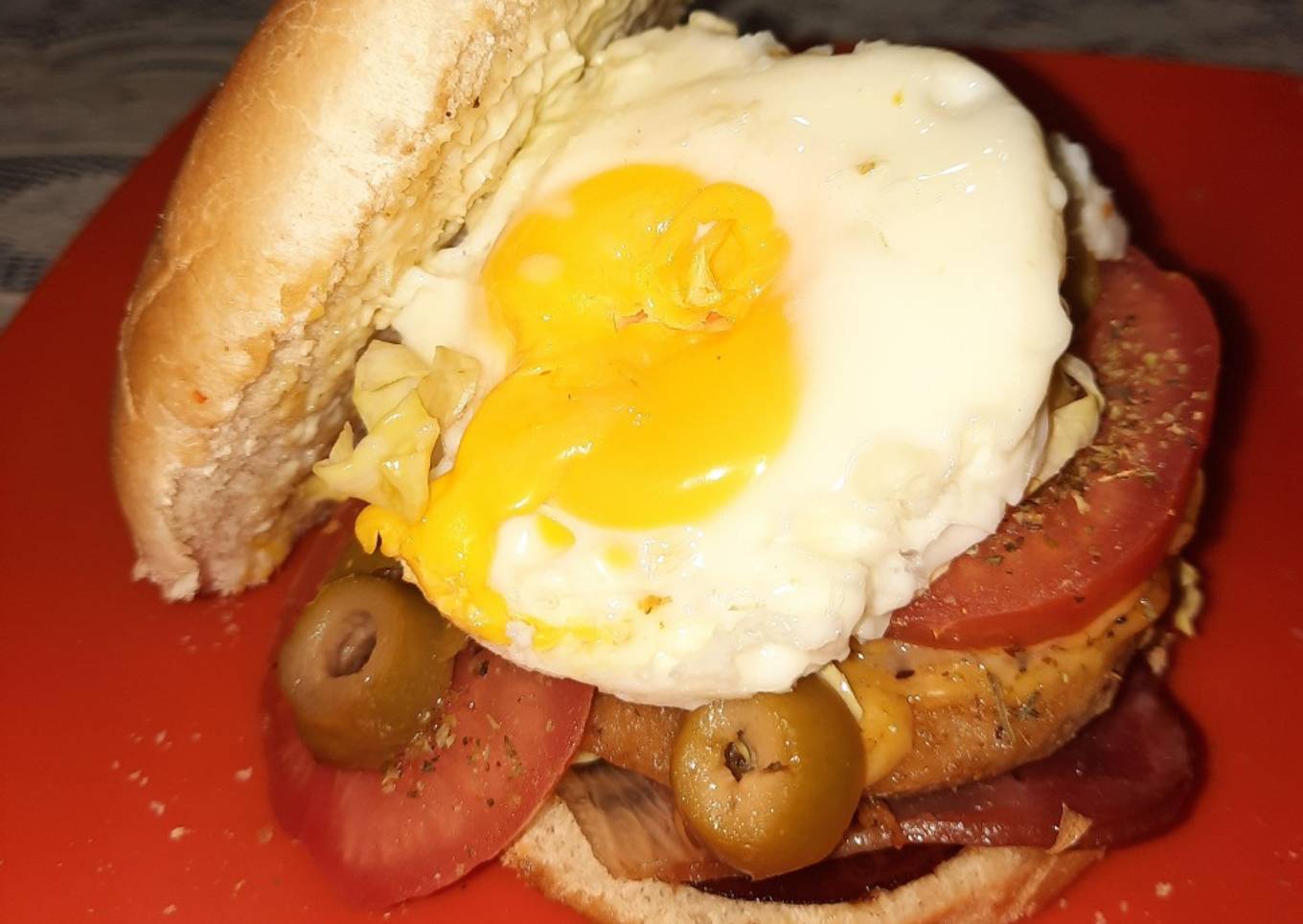 - Otra opción sin verduras - untar el pan con la salsa que les gusta, poner la panceta ahumada bien crocante, la hamburguesa bien cocida y el huevo - listo !!!!