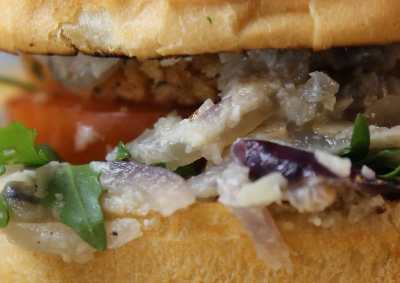 - Fr铆e las hamburguesas, tuesta el pan y monta tus hamburguesas veganas de soja texturizada con un poco de r煤cula, una rodaja de tomate y con la salsa de cebolla bien untada en ambos lados de tu pan.