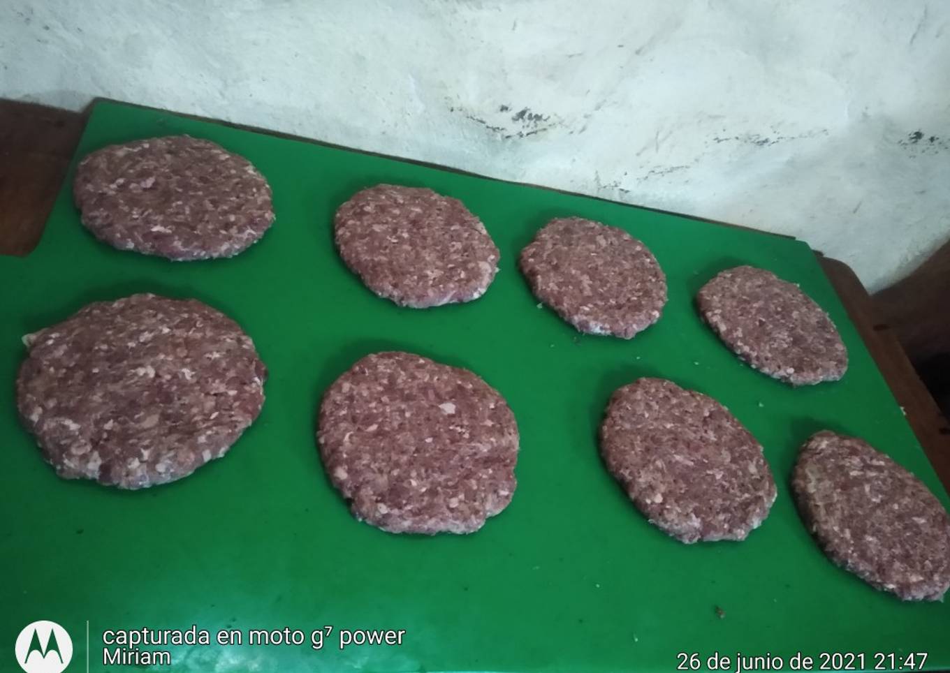 - Tomar bolitas de carne a gusto más o menos de 100 gr cada una armar las hamburguesas