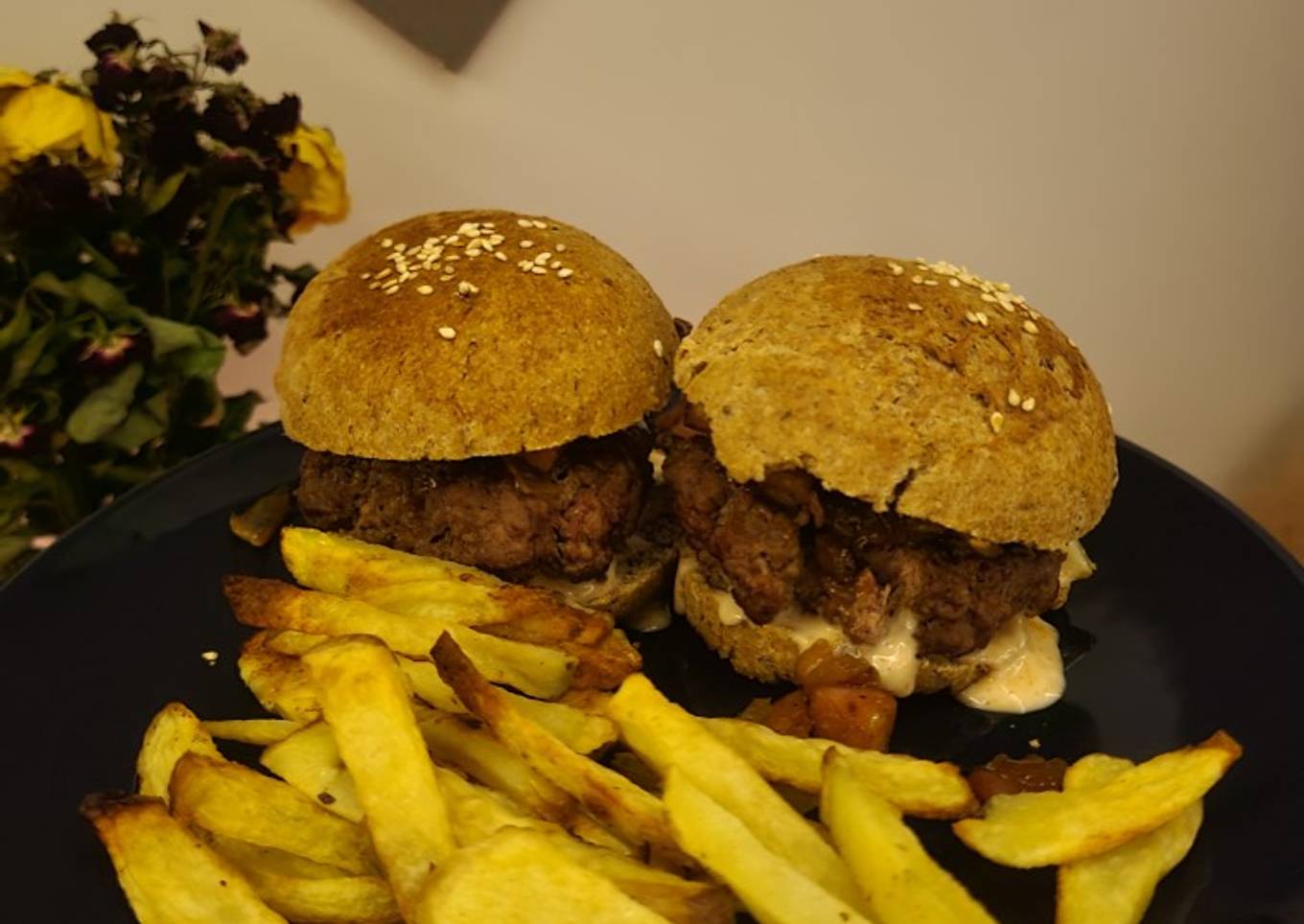 - Para la carne condimentamos, hacemos las formas y cocinamos a la parrilla o en un grill