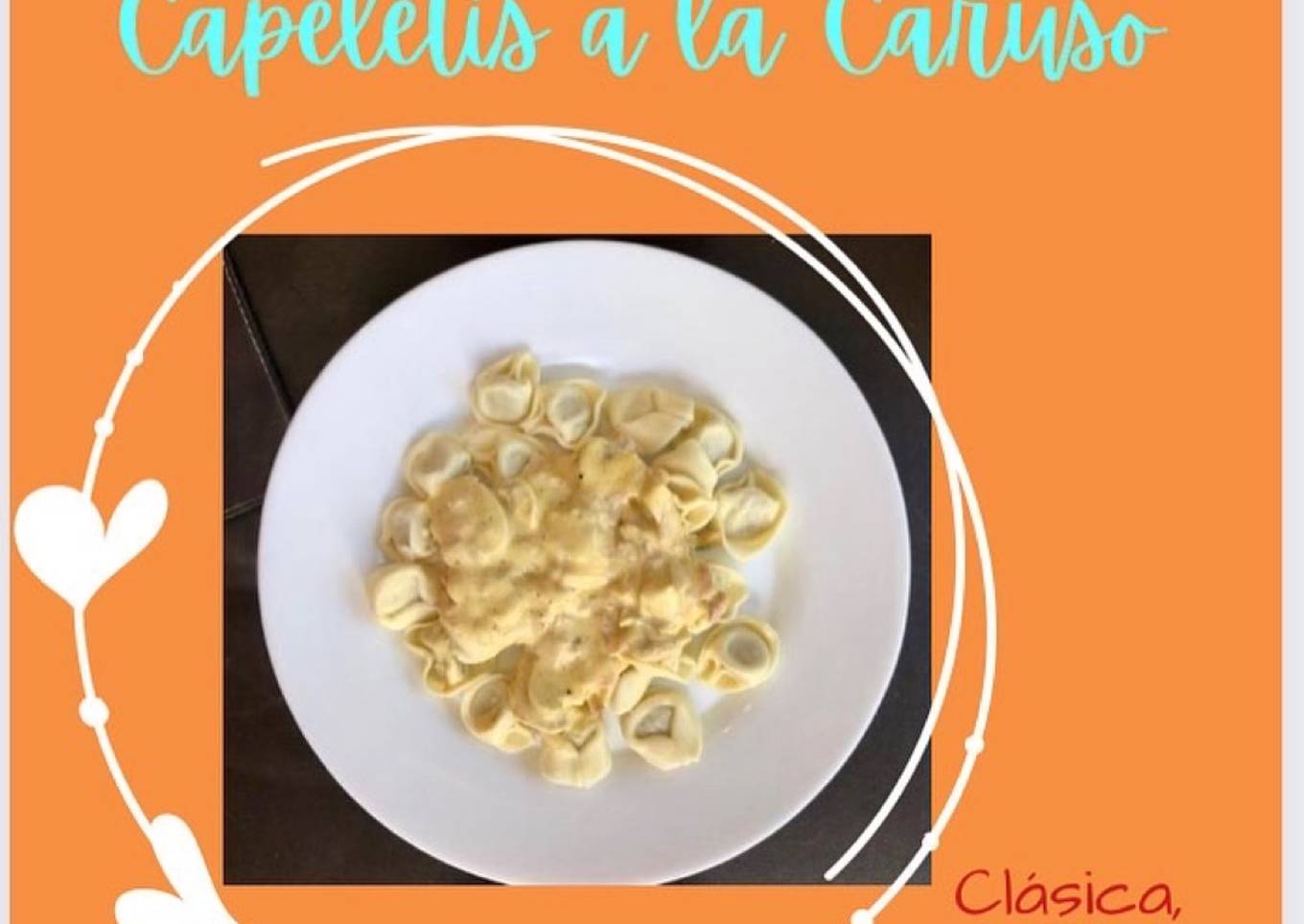 Fue creada en 1954 en un restaurante de Montevideo llamado «Mario y Alberto» (Constituyente y Tacuaremb贸) por el chef piamont茅s Raimondo Monti para acompa帽ar los cappelletti. Cre贸 los «capeletis a la Caruso» en honor al gran tenor italiano Enrico Caruso.