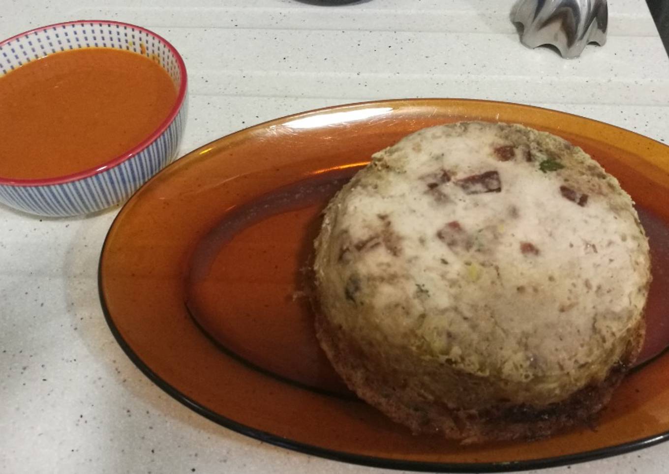 - Lo metes 20 minutos de microondas hasta que cuaje. Potencia media/alta del microondas (750 por ejemplo). Plato listo. Se parte en frío siempre. Vamos con la salsa